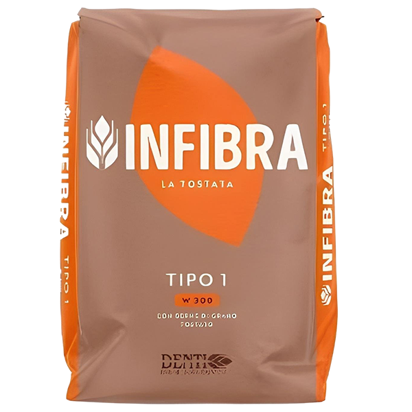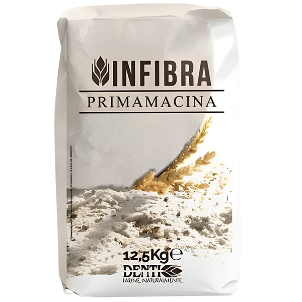 Farina W360-370 con crusca, cruschello, grano spezzato e germe tostate. Ideale per pizza classica a lunga lievitazione. 100% naturale, senza additivi né aromi